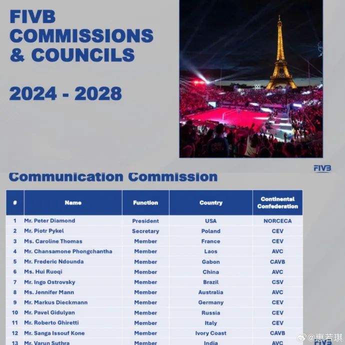 对此,惠若琪发文表示:很荣幸再次担任国际排联通讯传播委员会委员,祝贺Fabio先生履新国际排联主席,新的周期,继续为排球事业发光发热。